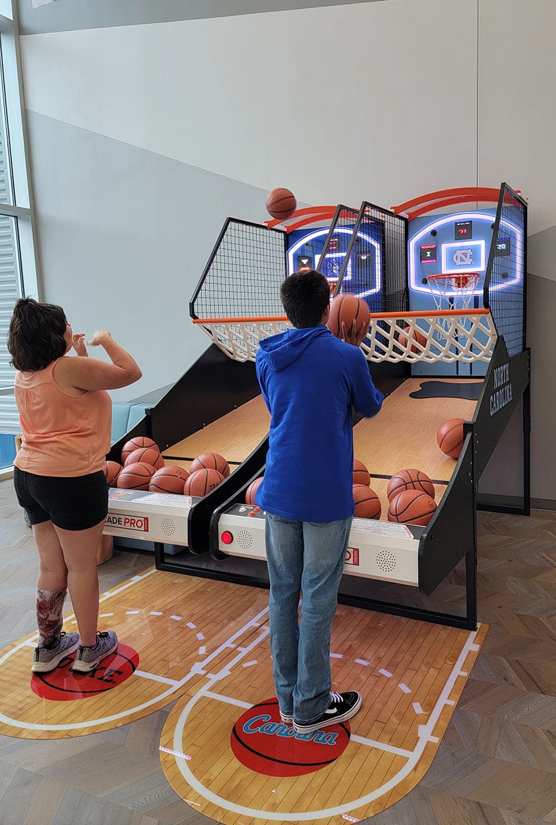 STRONG GAME CONSTRUCTION: Featuring a real wood floor and an official NBA license, NBA Gametime Pro delivers an authentic experience that will make you feel like you're playing in a real basketball court. NBA Game Time Pro, which is built to last with an ultradurable powder-coated steel chain net and a powder-coated 14 gauge cold-rolled steel on the side cage, this game is tough enough to withstand even the most intense games. With its sleek design and high-quality arcade like construction, this game is built to last and will provide endless hours of entertainment for you and your family.